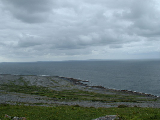 The Aran Islands through rain, as we move towards a sheltered spot to have lunch.